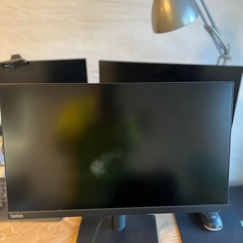 Lenovo 23" skærme i sort. De har en opløsning og størrelse på 23 tommer, velegnet til både kontor- og hjemmearbejde/hjemmekontor. Tilslutningsmuligheder inkluderer HDMI og VGA. Kan reguleres i højden, så de passer. Købt for 800kr pr stk. 1.600kr i alt. Byd gerne. Kan hentes i Århus C. Først ril mølle princip🤗