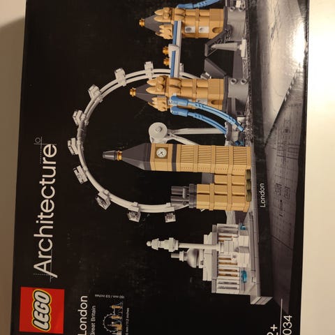 LEGO Architecture London bygningssæt med modeller af ikoniske bygninger som Big Ben, Tower Bridge og London Eye. Byggesættet indeholder detaljerede miniaturemodeller, der kan bruges til samling og udstilling.