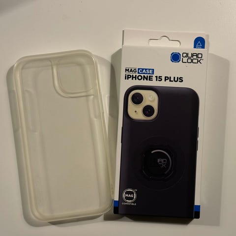 Næsten nyt quadlock cover i sort. Passer til iPhone 15. Ny pris 500kr