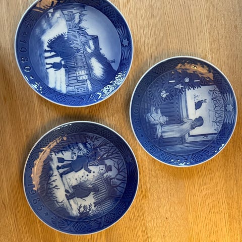 Tallerkener er dekoreret med detaljerede scener fra år til år og er velegnet til samling eller brug ved særlige lejligheder.