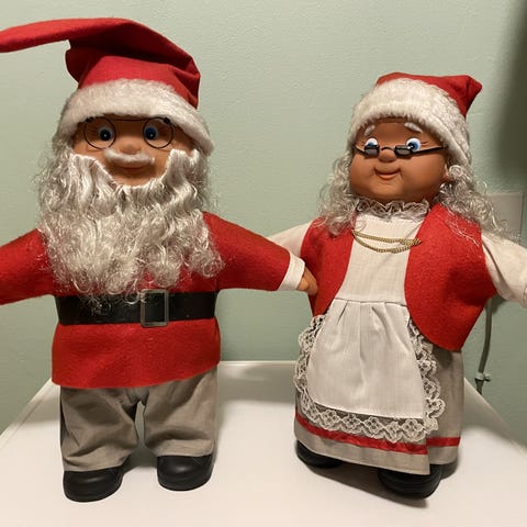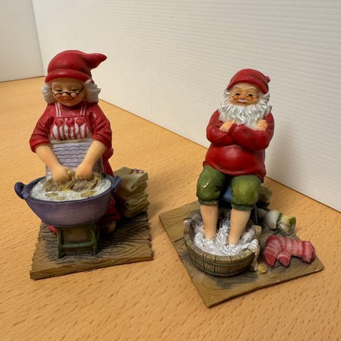 Nissemor og nissefar i keramik med lanterner til fyrfads- eller LED lys sælges.