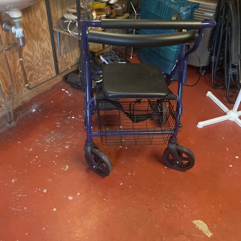 Rollator, brugt ganske få gange og derfor i rigtig fin stand (Nypris hos Harald Nyborg: 1.299,-kr.: https://www.harald-nyborg.dk/letvaegts-rollator-napoli-aluminium)