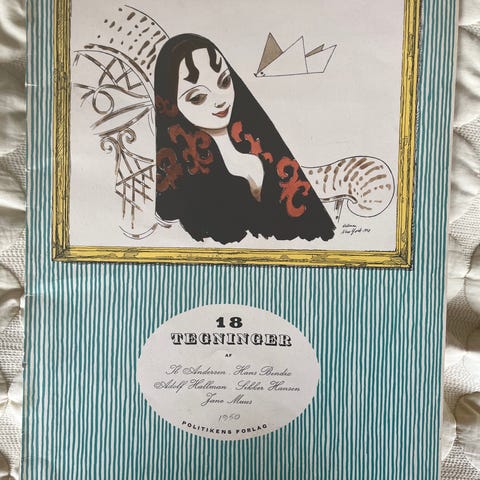 Tegninger fra 1960 af flere af tidens kunstnere, herunder Ib Andersen, Des Asmussen, Lars Bo, Adolf Hallman, Gerda Nystad, Ib Spang Olsen, Kamna Svensson og Arne Ungermann. De fleste i farver. 41 x 52 s. Kun tryk på en side, som kan afrives med henblik på indramning. Pæn stand. Skal afhentes.