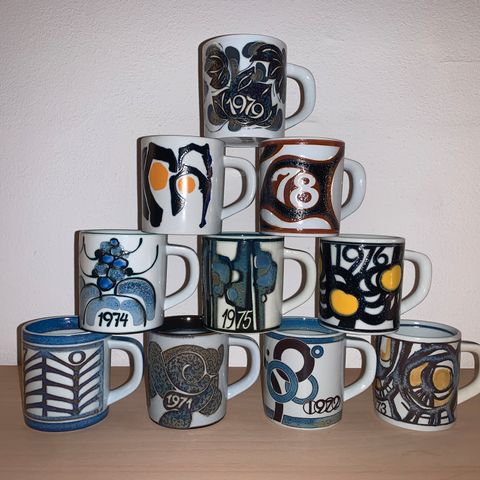 Royal cph. årskrus 1983 Lille krus i blå og hvid keramik. Kruset har et dekorativt mønster og en hank. Velegnet til servering af varme drikke som kaffe eller te.