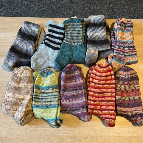 Nye hjemmestrikket strømper str. 2 år. Pr. par kr. 20,00