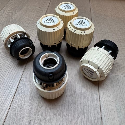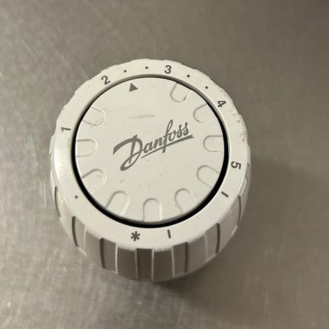 Danfoss RAV 2960 termostatventil hoved i hvid plast med justerbar temperaturindstilling. Passer til radiatorer for regulering af rumtemperatur. Ny pris 219kr sælges for