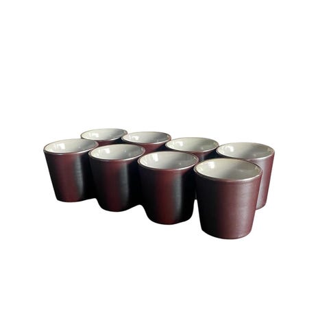 L. Bornholm, mørkebrun glaseret stentøjs snaps flasker. Alle tre i flot stand, den uden korkprop har lidt små bobler i stentøjet.