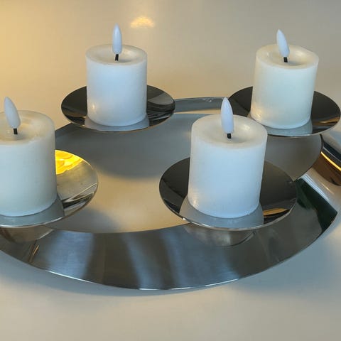 Elegant og stilren adventsstage fra Georg Jensen i modellen “Four”, designet af Maria Berntsen. Fremstillet i blankpoleret rustfrit stål med plads til 4 bloklys (medfølger som ekstra). Perfekt til juletiden og moderne nordisk indretning. Original æske og indlæg medfølger.