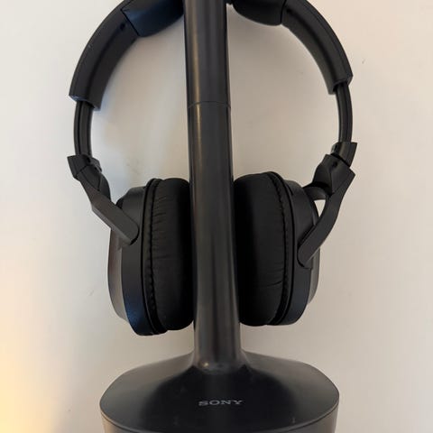 Sony Inzone trådløse høretelefoner med opladningsetui og USB-C adapter. Høretelefonerne er designet til trådløs brug og leveres med ekstra ørepropper for tilpasning.