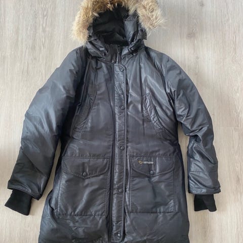 Lækker kvalitetsjakke i super stand med aftagelig hætte. Købt for mange år siden, men brugt maks 10 gange (da ‘den’ blev for smal om hofterne). Eneste synlige brugsspor er lidt make-up-rester på indersiden af kraven (ikke forsøgt fjernet, da som sagt næsten ikke brugt) ellers er den som ny. Opbevaret på bøjle i garderobeskab, lugter ikke, ikke-ryger-hjem. Str S, men stor i størrelsen.