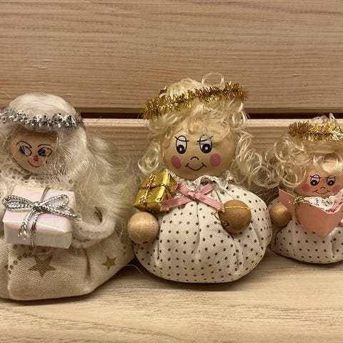 To engle, To nye poser / julepakker med “lav selv engle”.
