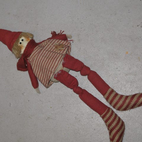 Nissepige i træ - malet og med orange filthue. Mærket Design Laumann i bunden . Højde 10cm. Pæn stand. Pris kr 35