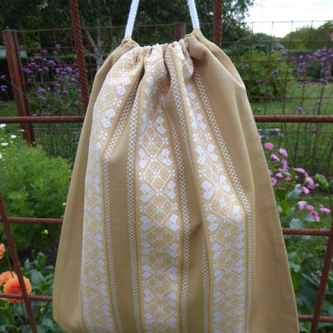 Stofposen er velegnet til mange formål, bl.a.: Gymnastikttøj - skiftetøj & -sko- håndarbejde - bamser og opbevaring af 1.000 andre ting.