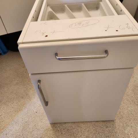 Underskab fra Dansani 80x44cm med to skuffer med softclose funktion, der lukker blødt i. Laminat. Har en lille skramme som nok skjules af vask eller bordplade, se billede 3 nederst.