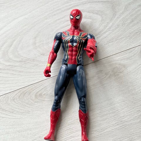 Marvel Spider-Man actionfigur i rød og blå farve. Yderligere medfølger en anden actionfigur med hjelm og rustning. Begge figurer er velegnede til samling eller leg.