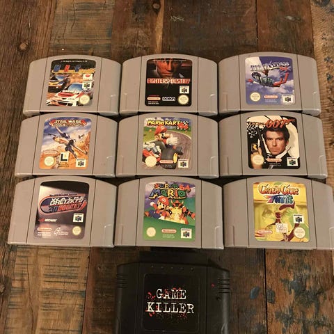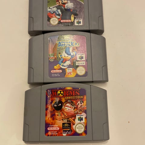 Pakke med fire Nintendo 64 spil: Star Wars, Tetris Challenge, Air boarder 64 Lamborghini