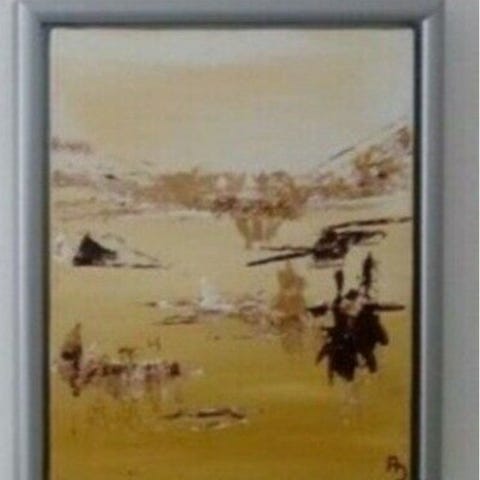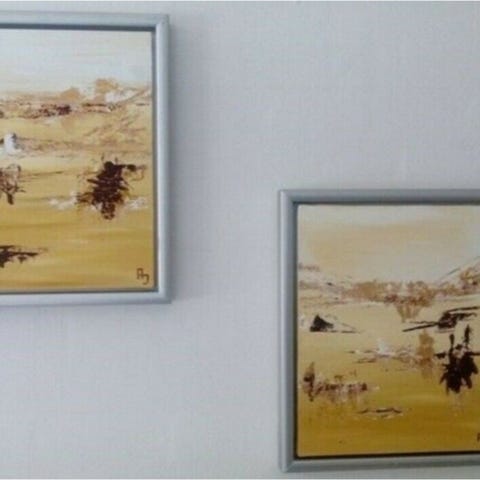 Akrylmaleri, Annelisa Johansen , motiv: Landskab, stil: Abstrakt, b: 28 h: 34, Annelisa Johansen er en herboende færøsk maler, der er inspireret af naturen i sit hjemland. Maleri på hver 24 x 30 cm (28 x 34 i medfølgende ramme). Det er i gule og brune nuancer. Matchende maleri sælges også. Pris pr. styk kr. 350 (før 600) - eller kr. 600 (før 1.100) for begge.