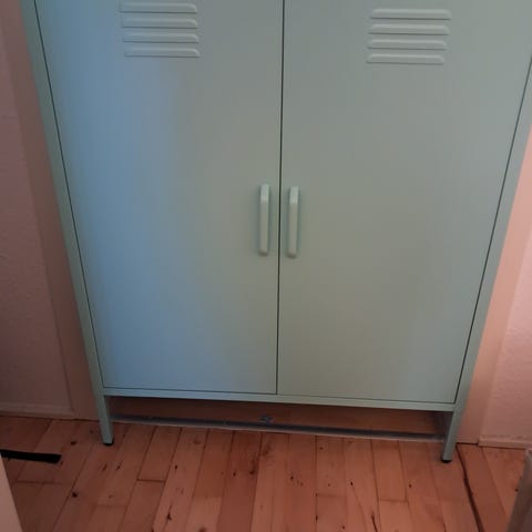 Sort metal opbevaringsskab med fire låger og indvendige hylder. Skabet kan aflåses og disgnet af Jam Architettura i Milano. Velegnet til både arbejds- og teenageværelset.