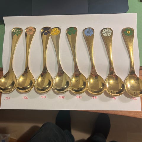 Georg Jensen bestik designet af A. Michelsen. 3 skeer med forskellige mønstre på skaftet. Skeerne er designet til generel brug og kan anvendes til servering . Skeerne er fra 1924, 1945 og 1987. De er i uåbnede poser. Pris pr stk. kan afhentes i Nykøbing F eller på Frederiksberg
