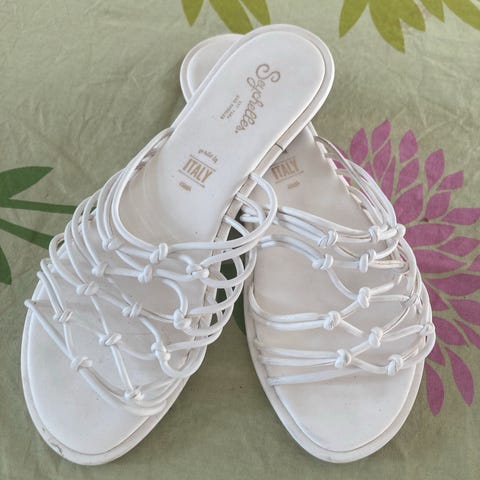 Hvide stik i sandaler med knude detalje - tror jeg man vil kalde det