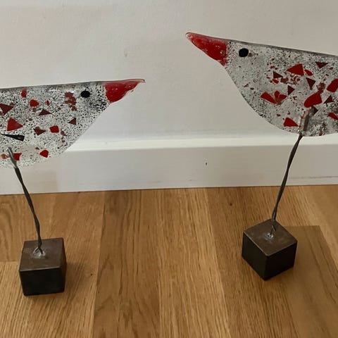 Messingfugle/lysestager til små lys, samlet: 125kr.