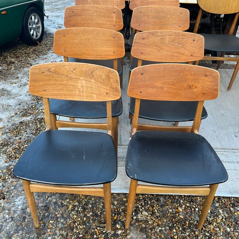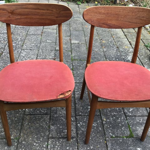 4 stk. dansk produceret og designet af Vestervig Eriksen teaktræ spisebordstole sælges. Stolene trænger til ny polstring. Prisen er pr stk.