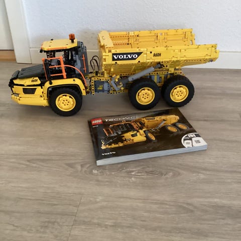 LEGO Technic 42081 – Volvo Concept Wheel Loader ZEUX. Futuristisk Volvo læssemaskine med firehjulsstyring, bevægelig bom/skovl og justerbar modvægt. Inkl. drone-model. Udfaset samlersæt fra 2018 i original æske. Prisen er fast.