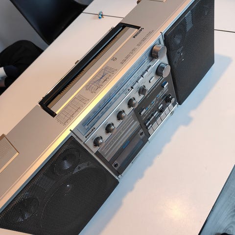 Den er i god stand og virker, som den skal. Lyden er klar, alle knapper fungerer, og kabinettet er pænt uden større skader.
