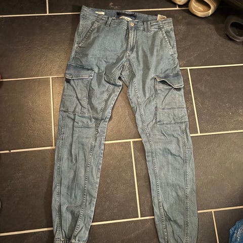 Jack & Jones Loose/Edge denimbukser i blå farve. Størrelse S med taljemål W29. Fremstillet i denimmateriale. Designet til mænd.