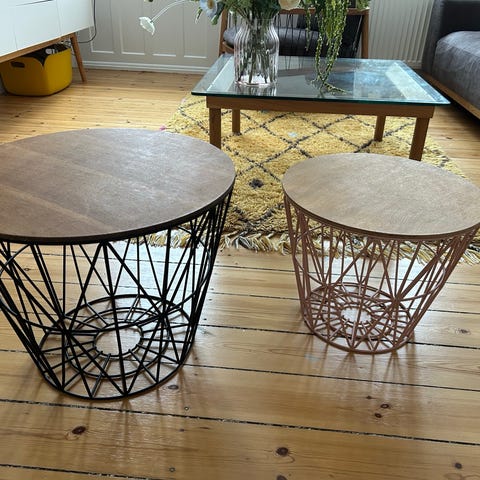 Sofabord, Ferm Living , metal, b: 40 h: 32, Wire Basket Large i sort fra Ferm Living med sort trætop. Bruges som bord eller opbevaring. Velholdt!