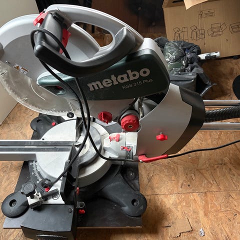 Metabo KS216 lasercut kap-/geringsav med 216 mm klinge. Maskinen er velegnet til præcise snit med forskellige vinkler. Der er indbygget laserlys, som lyser ned på træet, der hvor klingen skærer. Der er sidestøtteborde, skruetvinger og støvopsamlingspose.