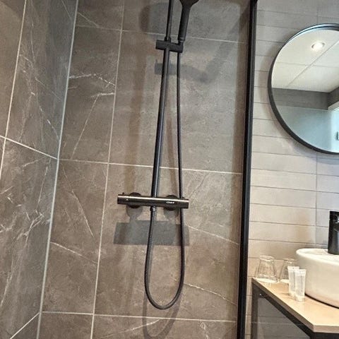 Fliser med marmormønster i beige og lyse toner. Materialet er stenbaseret og velegnet til gulv- og vægbeklædning. Farven og mønsteret giver et naturligt og elegant udseende.
