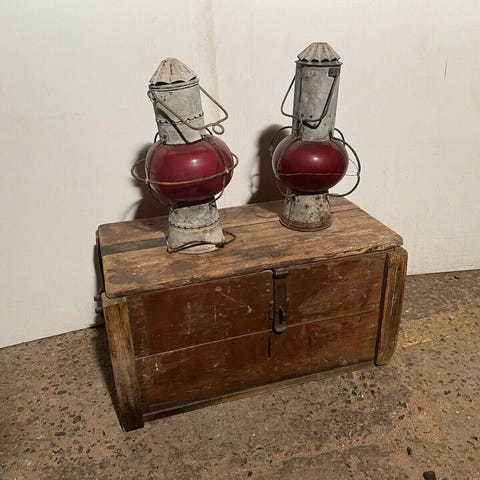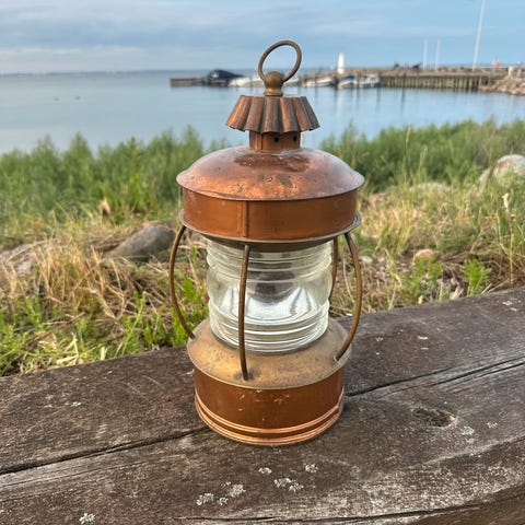 2 stk ankerlanterner i kobber og messing,fremstår malet.