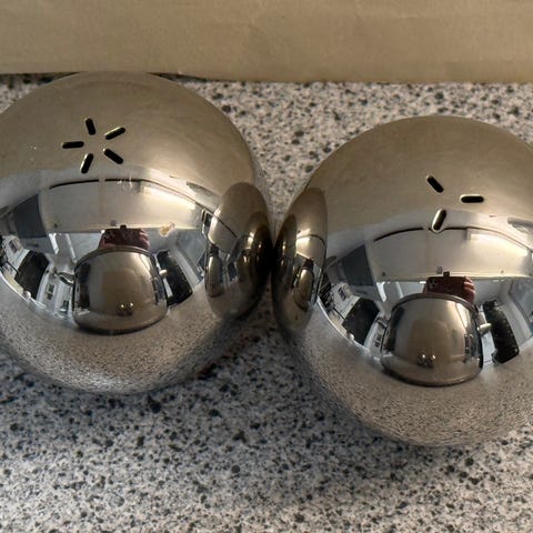 Runde Salt og peber sæt kugler fra Menu mega tumlinger af designer Henriette Melchiorsen i sølv / rustfrit stål