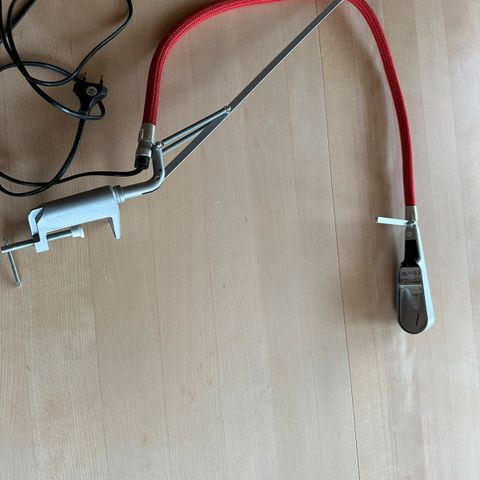 Metallampe, cremefarvet, har en lille løshed i drejeled