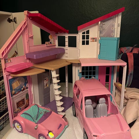 Stort barbiehus med pool og møbler