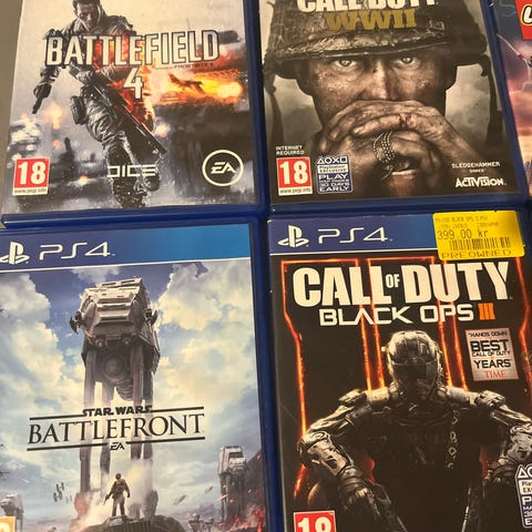 Samling af Playstation 4 spil med fokus på sportsgenren, herunder FIFA, NHL og PES, samt actionspil som Injustice. Spilene varierer i udgivelsesår og inkluderer forskellige versioner af fodbold- og ishockeyspil.