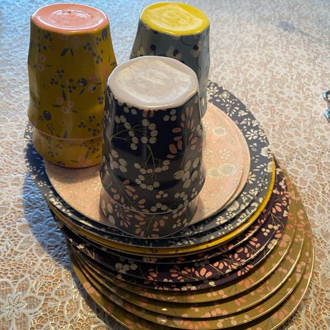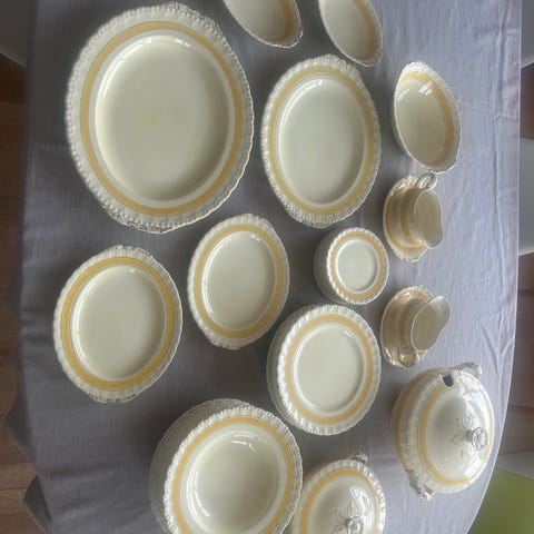 Service af keramikservice i beige og brun