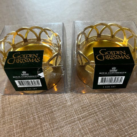 Georg Jensen Jul juledekoration lysestage i guld med plads til fire lys. Designet til brug som juledekoration.