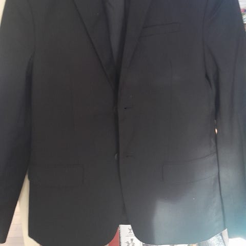 Det sødeste jakkesæt i lækker kraftig kvalitet bestående af sort blazerjakke, vest, lilla slips og sorte laksko i str 26. Passer fra str 2-3 år. Fuldstændig som nyt. Der er ingen pletter men lyset drillede. Dragtpose medfølger. Skjorten i 100% bomuld str 104 kan evt medfølge gratis.