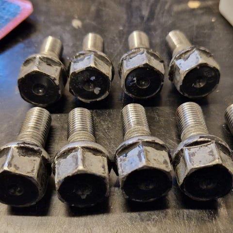 tilbehør, 1 sæt koniske hjulbolte med låsebolte og top. Der er 20+4 bolte 14x1,5 mm med konus. Gevindlængde ca 30 mm