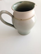 Keramik kande, N, motiv: Grøn /cremefarvet, Gl keramik kande
