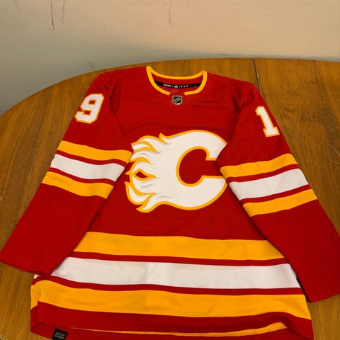 Adidas Calgary Flames Tkachuk Ishockeytrøje i størrelse 50 til mænd. Trøjen har sort, rød og gul farve med holdlogo på fronten og nummer 19 samt navn på ryggen. Fremstillet med Primegreen materiale, som indeholder genanvendte materialer. Egnet til anden sportstype.