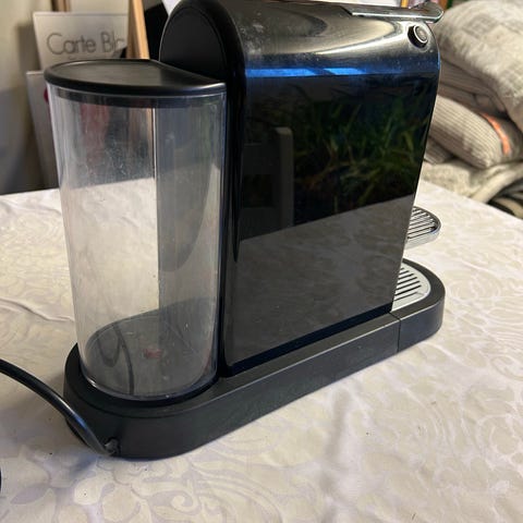Nespresso Essenza Mini kaffemaskine i sort farve. Kompakt design med nem betjening, egnet til at brygge espresso og lungo. Strømforsyning via ledning.