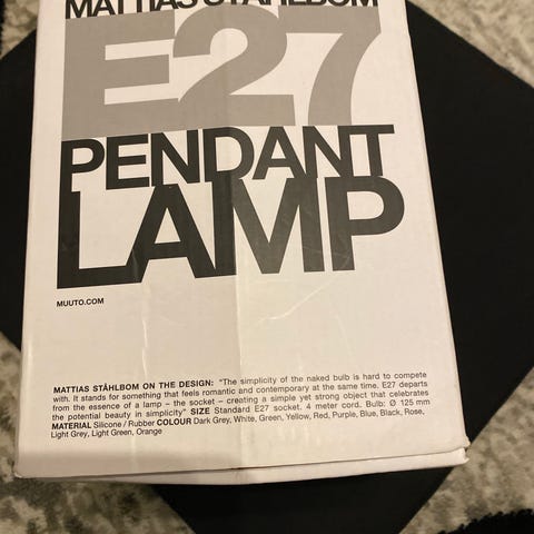 Sælger en helt ny og aldrig brugt Muuto E27 pendel i den populære gule farve. Lampen ligger stadig i original æske og er 100 procent komplet.