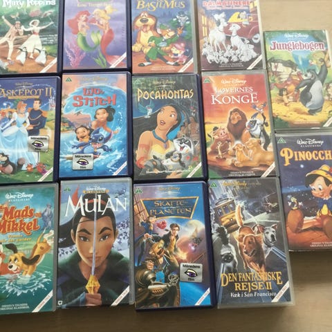 101 Dalmantiner - Dumbo - Den lille Havfrue - Jorden rundt med Timon og Puma - Lady og Vagabonden - Løvernes Konge - MesterDetektiven BasilMus - Tornerose - Rip, Rap, Rub på eventyr - Mads og Mikk