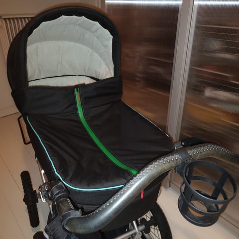 En fin Oddervogn med lidt rust på bremsestangen nederst. Ellers i fin stand. Desuden en masse andet babyudstyr. Ammepude, brystpumpe, trappegitter x 2, vippestol, badekar, hængevugge.