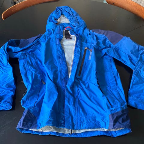 Didriksons Regntøj i beige farve, størrelse 40 til kvinder. Fremstillet i Gore-Tex materiale, som sikrer vandtæthed. Designet til udendørs brug med fokus på funktionalitet og beskyttelse mod regn.