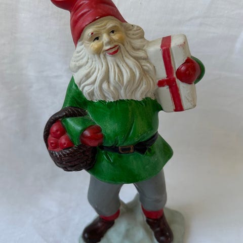 Skøn vintage nisse / julemand i håndmalet porcelæn. Nissen ligger på en stor pude og læser julehistorier og har en skål foran sig, som er velegnet til fx kalenderlys, en lille juledekoration, hyacint, kogler mv. En meget charmerende julenisse!