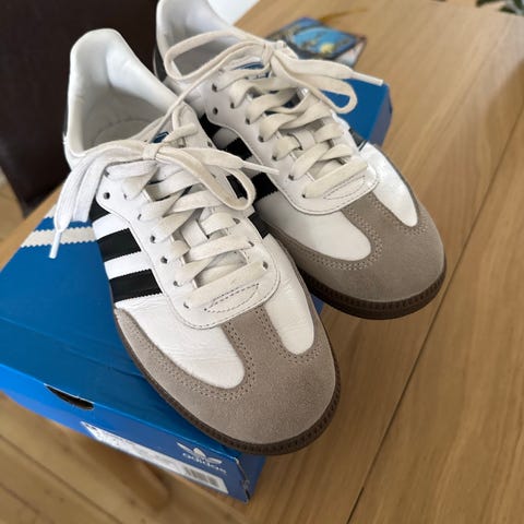 Adidas model Samba. Str 37/37,5 (UK 4,5). Hvide med røde striber.
